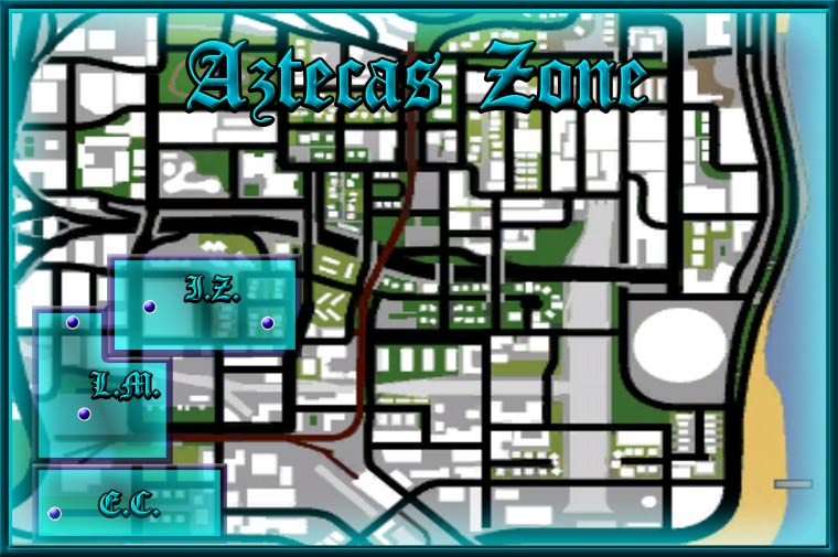 El Coronos Описание: Центральный район Aztecas Gang, родной дом латинасов, под защитой всей банды. Основной район продажи наркоты и оружия. ОТВЕТСТВЕННЫЙ ЗА РАЙОН: